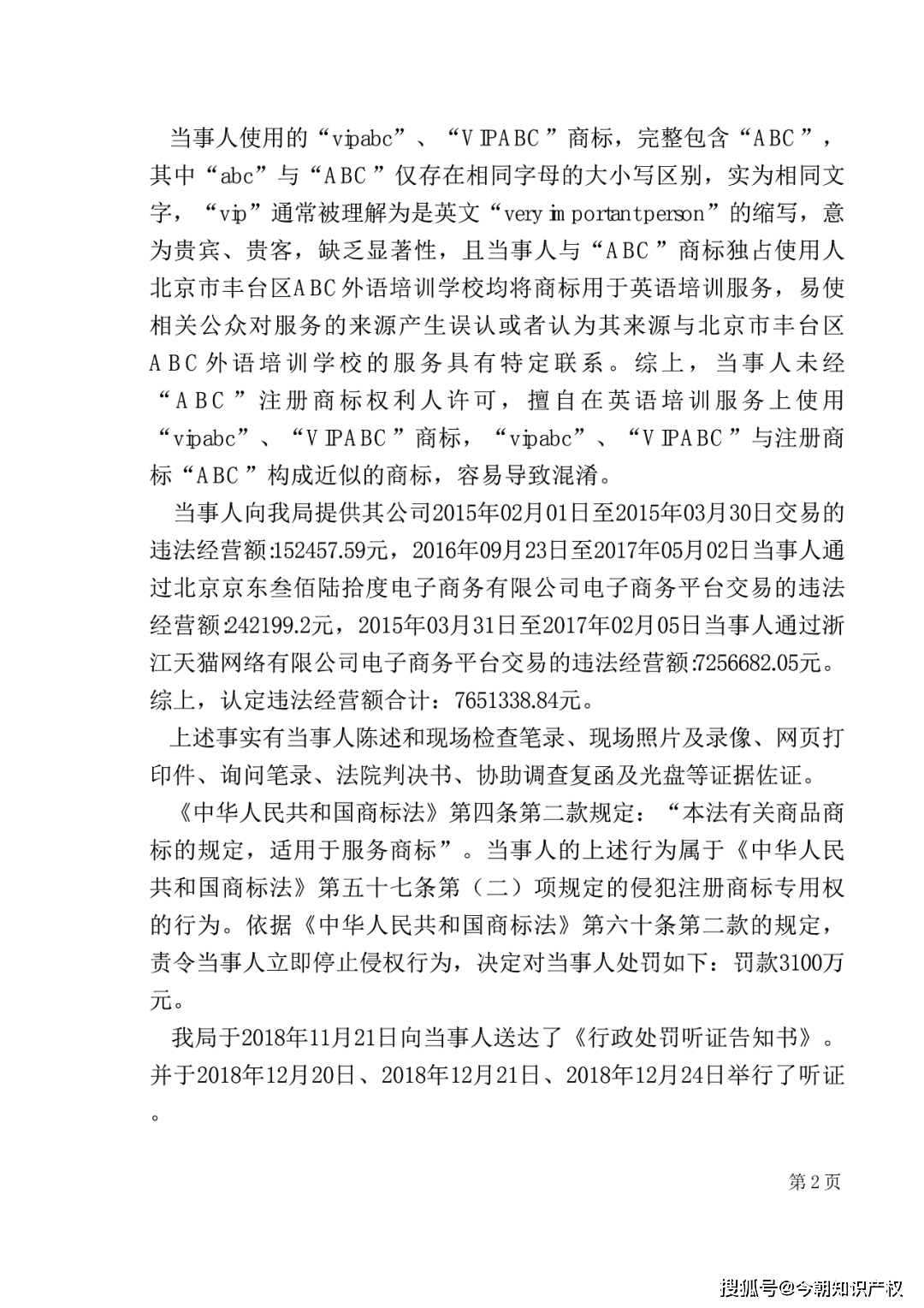 同时,因麦奇英语的侵权行为,在起诉之后,“丰台ABC学校”于2017年1月向朝阳局进行了举报,被告一朝阳局认定原告在侵权期间的违法经营额,决定对原告处罚3100万元的罚款。行政复议后,北京市市场监督管理局维持原处罚决定。