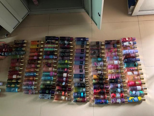 假冒的“维秘”品牌香水。本文图片均来由浦东警方供图成本仅10元,售价50元的“维秘”品牌香水,你敢买吗?7月1日,上海浦东警方根据前期侦查线索,出动40余名警力分赴两省三地展开一场雷霆抓捕行动,将5处制售假冒品牌香水窝点一举捣毁,成功抓获12名犯罪嫌疑人,查封12万余支假冒“Victora‘sSecret”(中文译名:维多利亚的秘密,以下简称:维秘)成品香水及大量相关配件、假冒商标,涉案总值约3000万元。
