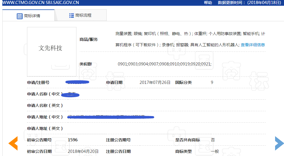 9类电子电气科技产品商标转让具有人工智能的人形机器人,复印机(照相、静电、热),体重秤,测量装置,录像机,智能手机,个人用防事故装置,报警器,眼镜,计算机程序(可下载软件)