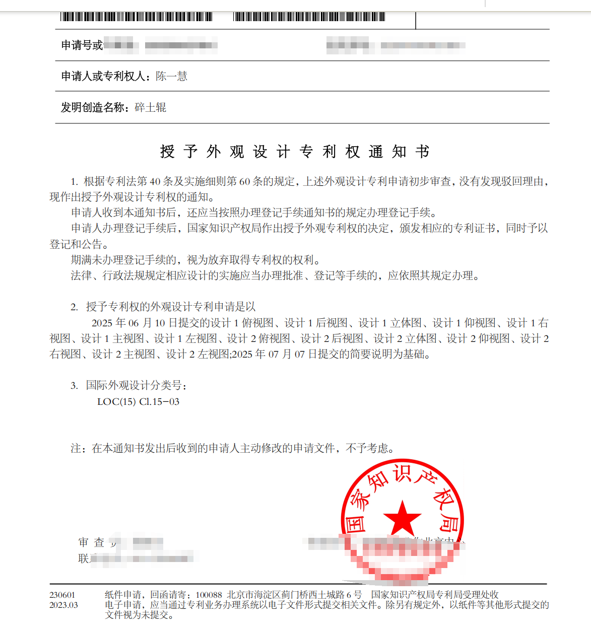 农机外观突围!碎土辊专利获批,律智库教你用设计 “锁” 住市场